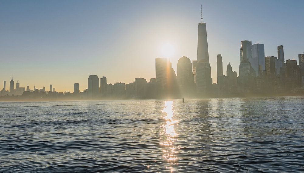 Buy the photo Sunrise over New York City, USA by Patrick Groß on canvas, ArtFrame, poster and wallpaper, printed on demand in high quality.
