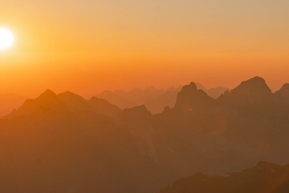Buy the photo Sunrise over the Tannheim Mountains by Leo Schindzielorz on canvas, ArtFrame, poster and wallpaper, printed on demand in high quality.