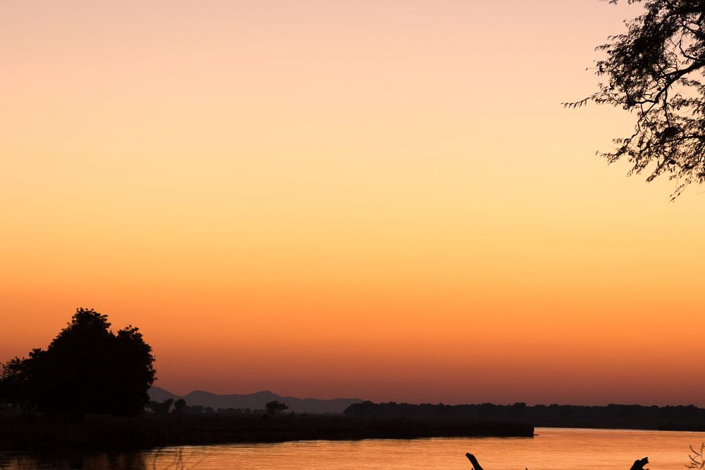 Sunrise over the Zambezi River in Mana Pools National Park in Zimbabwe.