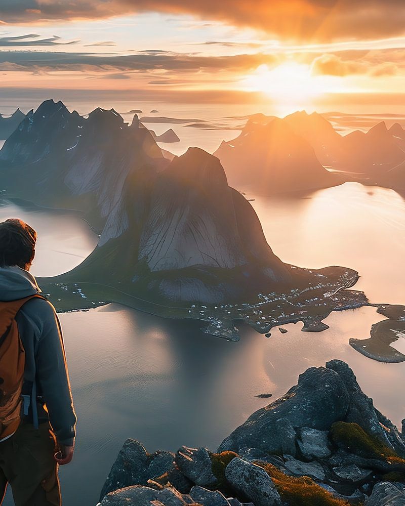Buy this landscape artwork Sunrise over the fjord by fernlichtsicht on canvas, ArtFrame, poster and wallpaper, printed on demand in high quality.