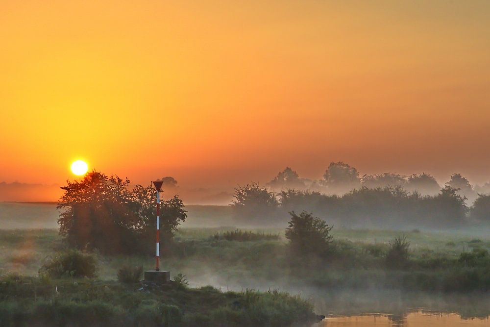 Buy this landscape artwork Sunrise over the meadows by Christian Harms on canvas, ArtFrame, poster and wallpaper, printed on demand in high quality.