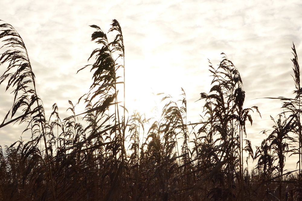 The sun rises at the reed on the water of the Nieuwe Dordtse Biesbosch