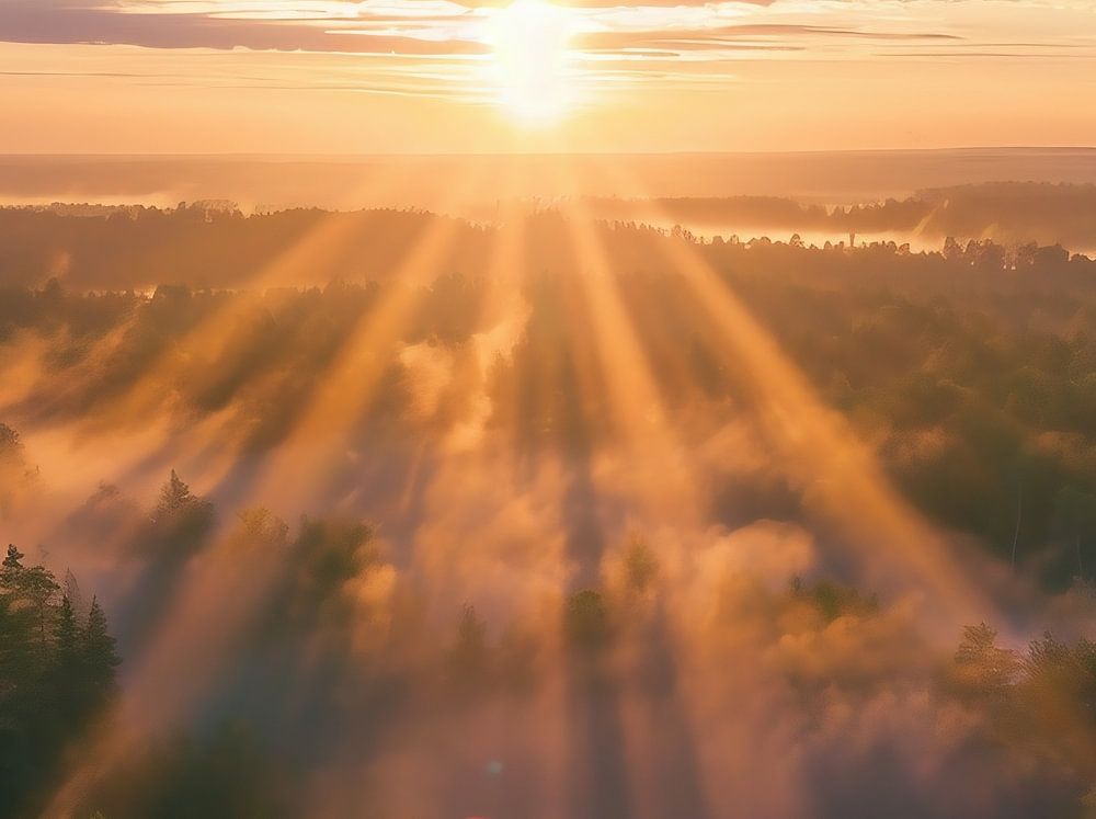 Buy this landscape artwork Sunrise over treetops by fernlichtsicht on canvas, ArtFrame, poster and wallpaper, printed on demand in high quality.