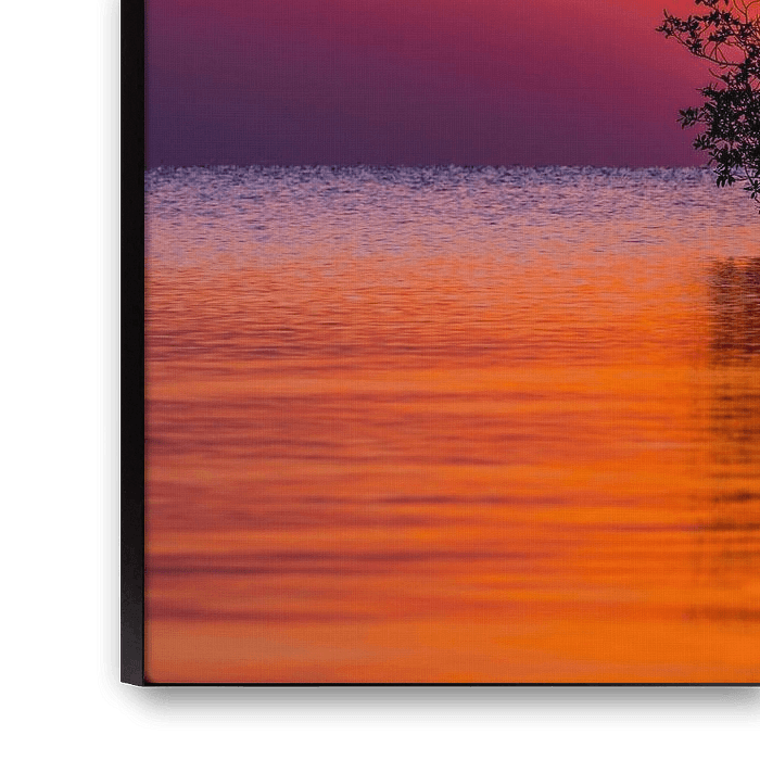 A particularly colourful and bright sunrise in Egypt on the Red Sea in the early morning. Every morning's sunrise is different. Always beautiful and sometimes spectacular as in this photo. The colour palette is beautiful, soft but also intense and bright. The colours orange, yellow, blue, pink, purple and peach blend together beautifully, no painting can compete with this. The mangrove tree gives a beautiful composition and sharp silhouette. The heron flying by creates a calm and serene image.