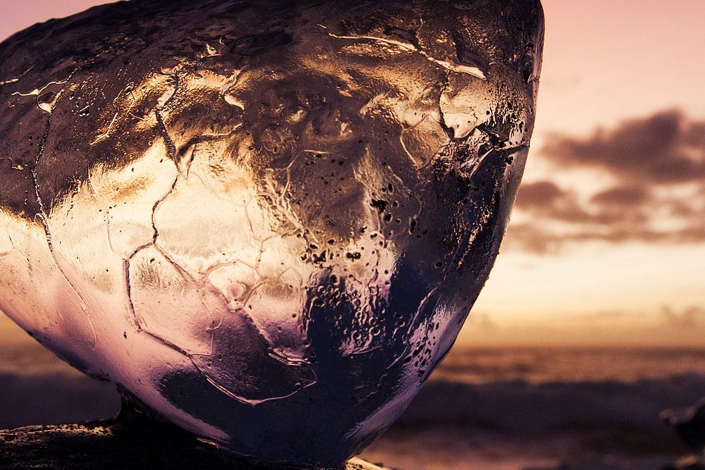 Buy the photo Sunrise through ice block by Robert Meerding on canvas, ArtFrame, poster and wallpaper, printed on demand in high quality.