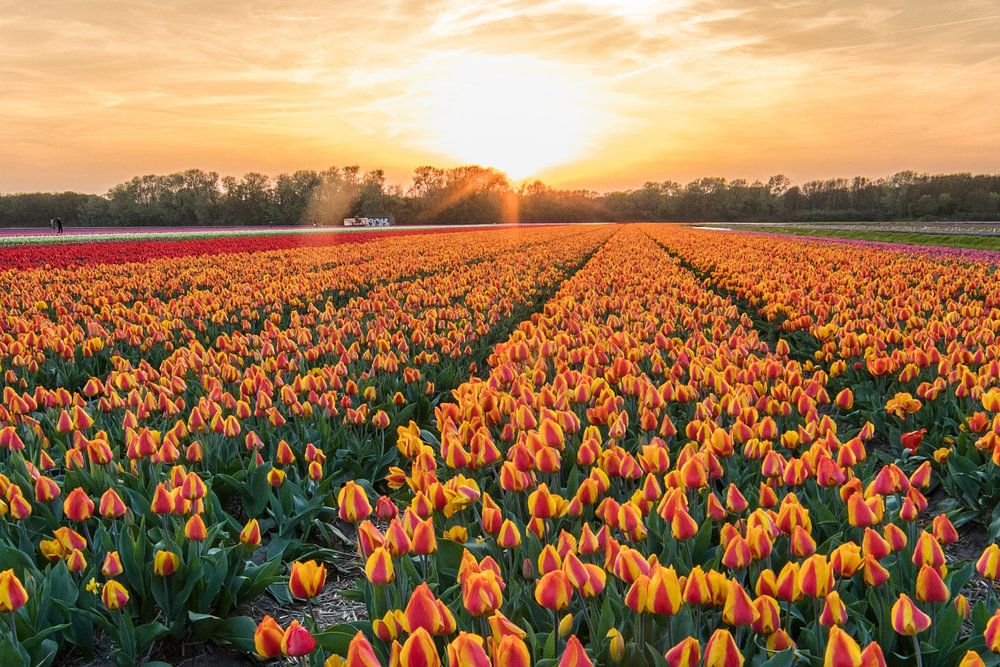 Buy this landscape artwork Sunrise tulip fields. by Peter Haastrecht, van on canvas, ArtFrame, poster and wallpaper, printed on demand in high quality.