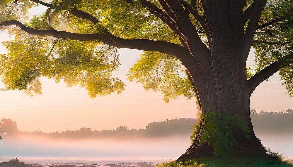 Buy this landscape artwork Sunrise with fog on the river by Mustafa Kurnaz on canvas, ArtFrame, poster and wallpaper, printed on demand in high quality.