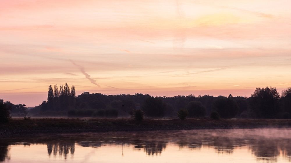 Sunrise with fog over the IJssel near Deventer by SchumacherFotografie