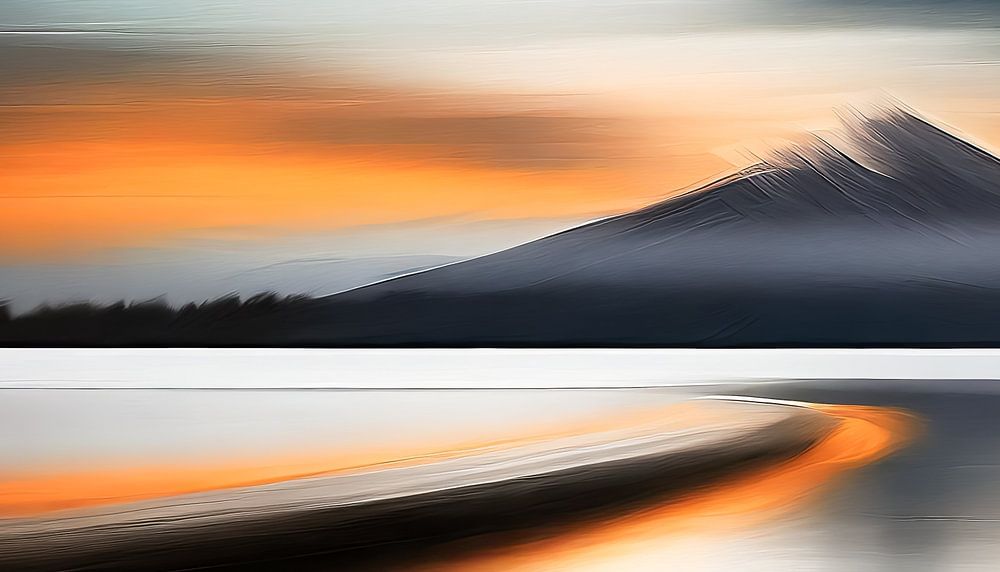 The picture describes an idyllic sunset by the sea... The orange-coloured sunset stands in harmonious contrast to the monochrome surroundings.....This is a digital art image that I created - derived from my own image material as a reference - with the help of tools for composing, AI generation and fine-tuning.