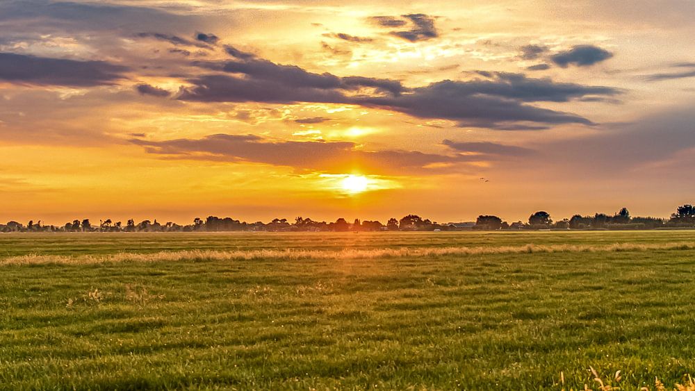 Buy this landscape artwork Sunset Alblasserwaard by Donny Kardienaal on canvas, ArtFrame, poster and wallpaper, printed on demand in high quality.