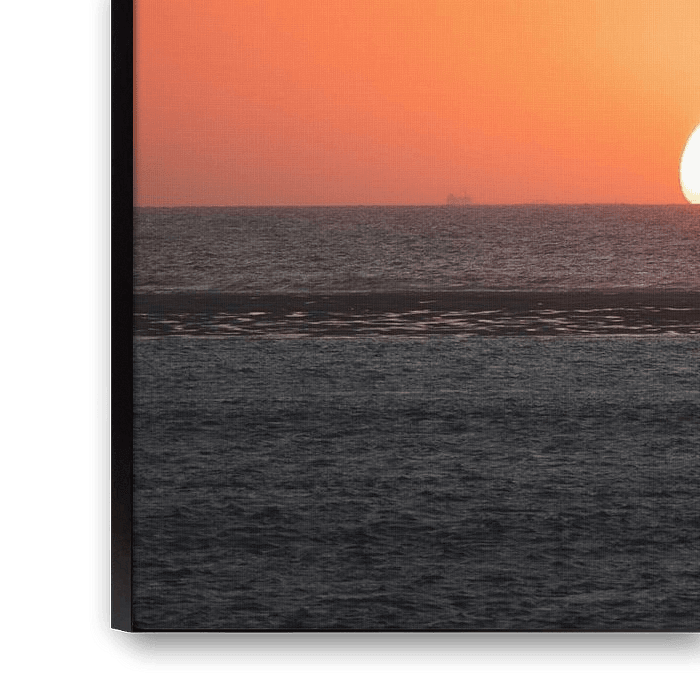 The telephoto lens offers a detailed and zoomed perspective, allowing you to perceive the fine texture of the waves and admire the nuances of the orange sky. It is as if you are taken to this serene moment on the coast, where nature creates its own work of art.