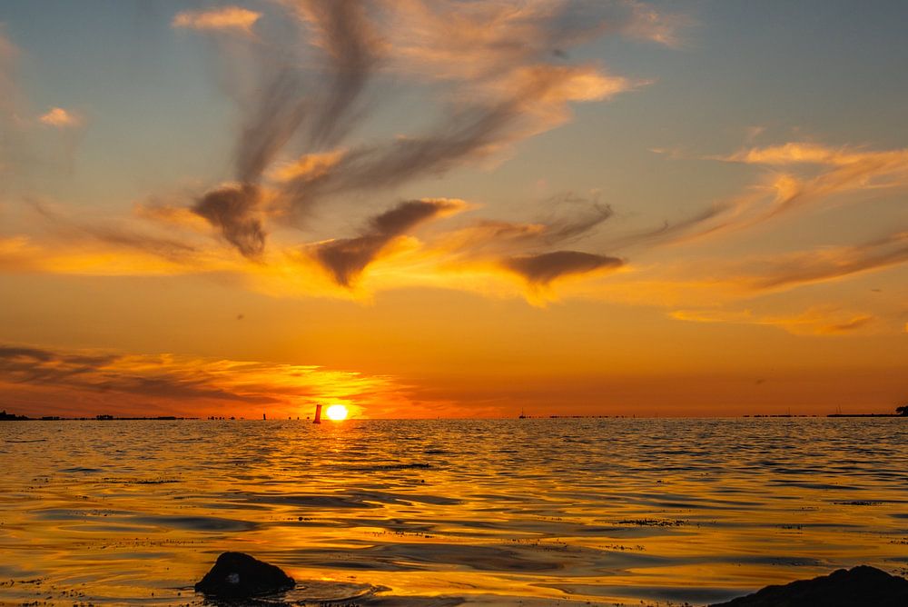 beautiful colours and reflections in the water of the Western Scheldt at this sunset the clouds seem to be sucked towards the sun.