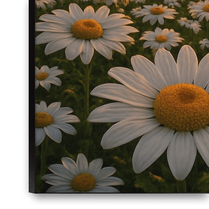 A golden sunset spills light across an endless field of daisies—pure serenity blooming under a sky of fire and wonder. Let nature’s gentle power fill your space with warmth and calm.