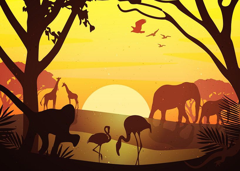 Buy this bird art Sunset View Safari Zone Retro Color by Artkreator on canvas, ArtFrame, poster and wallpaper, printed on demand in high quality.