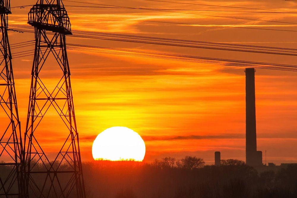 Sunset Zwolle, with electricity pylons. Also two pipes from the old power station, which is now demolished.