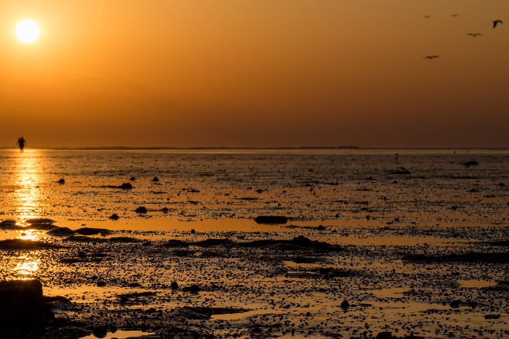The sunset during a warm summer evening at Mudhole on the Wadden Sea.