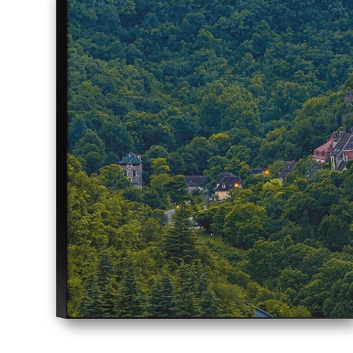 A 16:9 photograph of an evening during sunset at Rocamadour, a town and pilgrimage site in France.