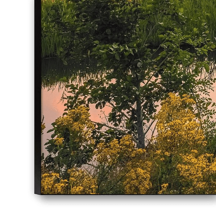 A 16:9 photo of a summer evening during sunset at corn mill "De Juffer", by the stream of the Hunze, just outside the village of Gasselternijveen, in the province of Drenthe.