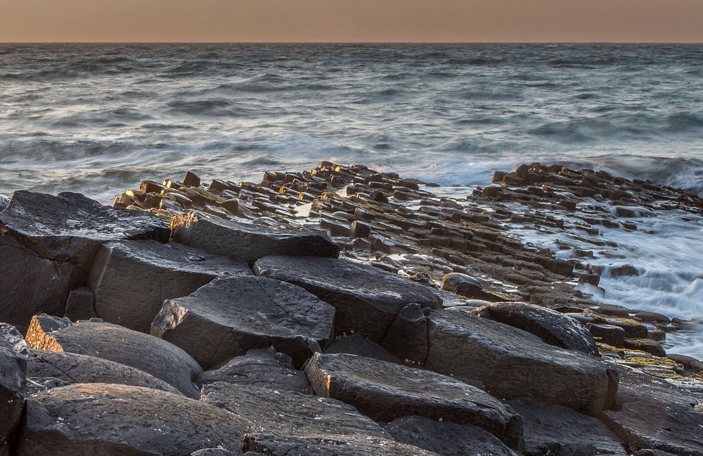 Sunset at the Giant's Causeway in Northern Ireland, world heritage