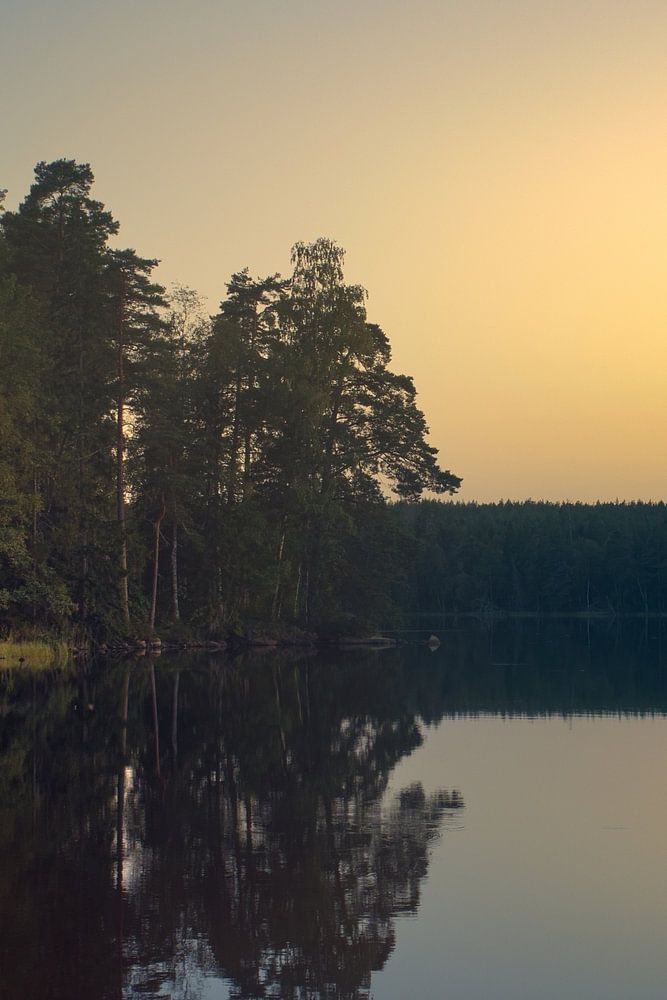 Buy this landscape artwork Sunset at the lake in Sweden by Martin Köbsch on canvas, ArtFrame, poster and wallpaper, printed on demand in high quality.