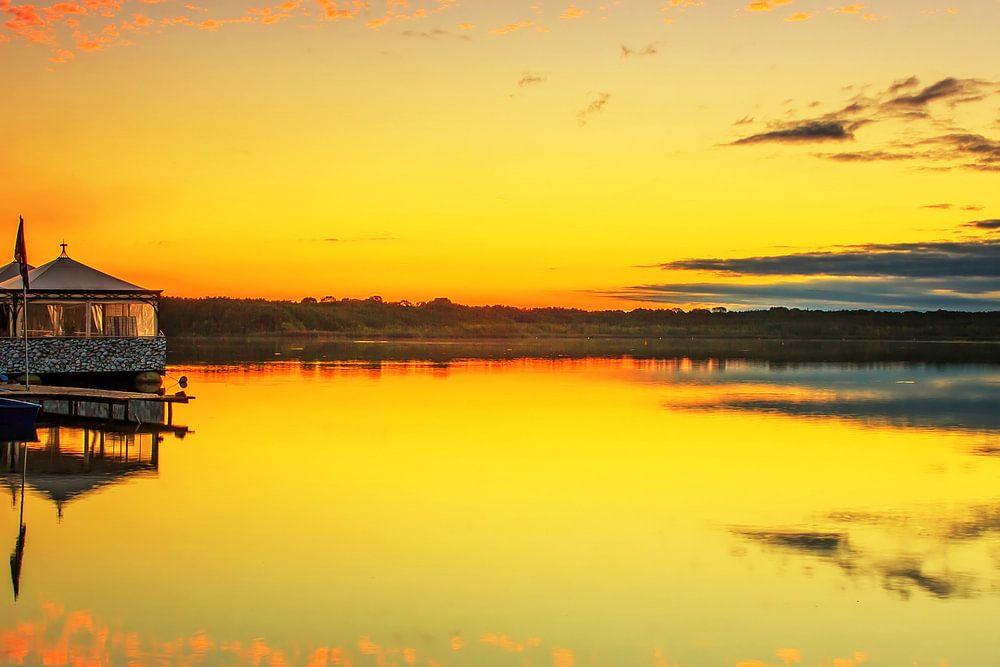 Buy this landscape artwork Sunset at the lake by Frank Herrmann on canvas, ArtFrame, poster and wallpaper, printed on demand in high quality.