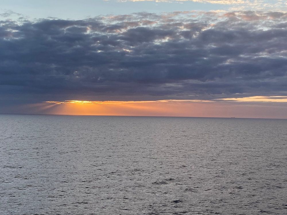 Sunset hidden behind the clouds. Photo taken at sea from a production platform.