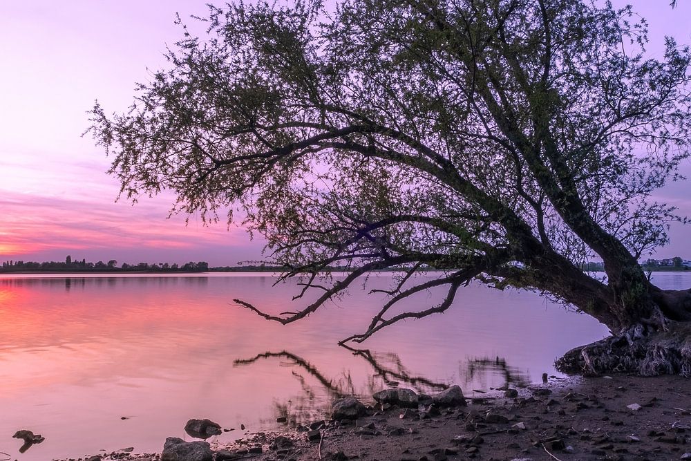 Fantastic spot on the Lower Rhine river. The low water level made it possible to photograph this old tree and its roots during a colourful sunset.