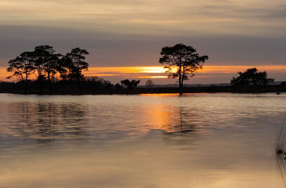 At a small pond near the Dwingelderveld nature reserve, the sun sets and the tree shines through the clouds. The striking little tree could easily be on the savannah. The photo was taken in January 2024.