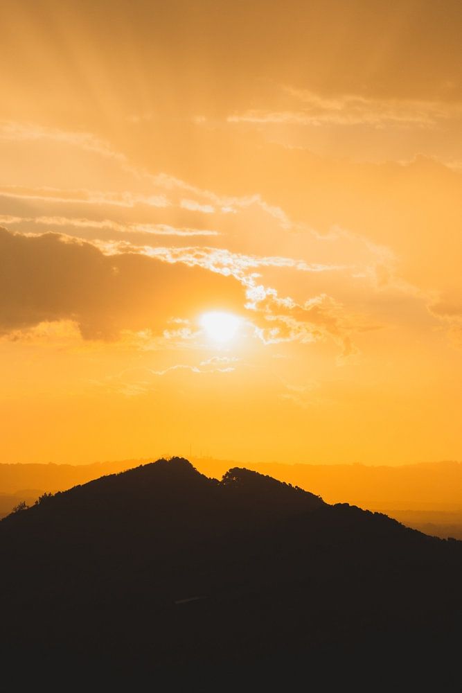 The sunset from the lighthouse on Byron Bay. A beautiful sunset is no exception here. As the clouds move around quite a bit, it gives a nice drawing in the sky. The golden hour.