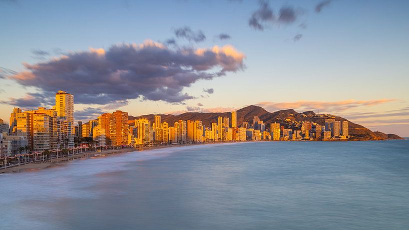 Buy the photo Sunset in Benidorm, Spain by Henk Meijer Photography on canvas, ArtFrame, poster and wallpaper, printed on demand in high quality.