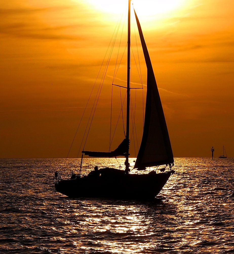Sunset in Marseille as a sailboat passes by by Nicolas Vaillant