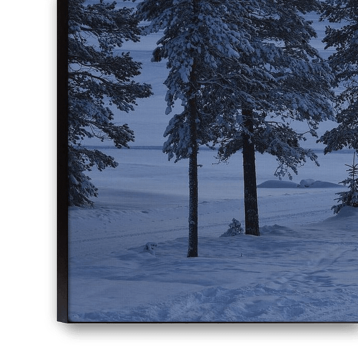 Buy the photo Sunset in snowy landscape by M M on canvas, ArtFrame, poster and wallpaper, printed on demand in high quality.
