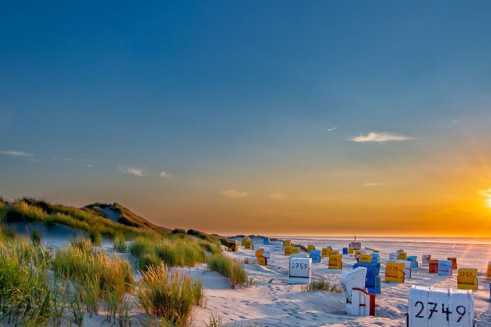 Sunset on the beach of Juist, East Frisian Islands, Germany.
