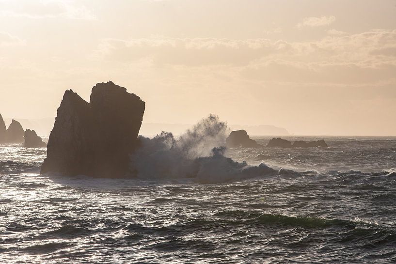 Sunset on a rugged rocky coastline by Peter Haastrecht, van
