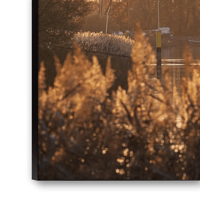 Buy this landscape artwork Sunset on the Lesum by Torsten Krüger on canvas, ArtFrame, poster and wallpaper, printed on demand in high quality.