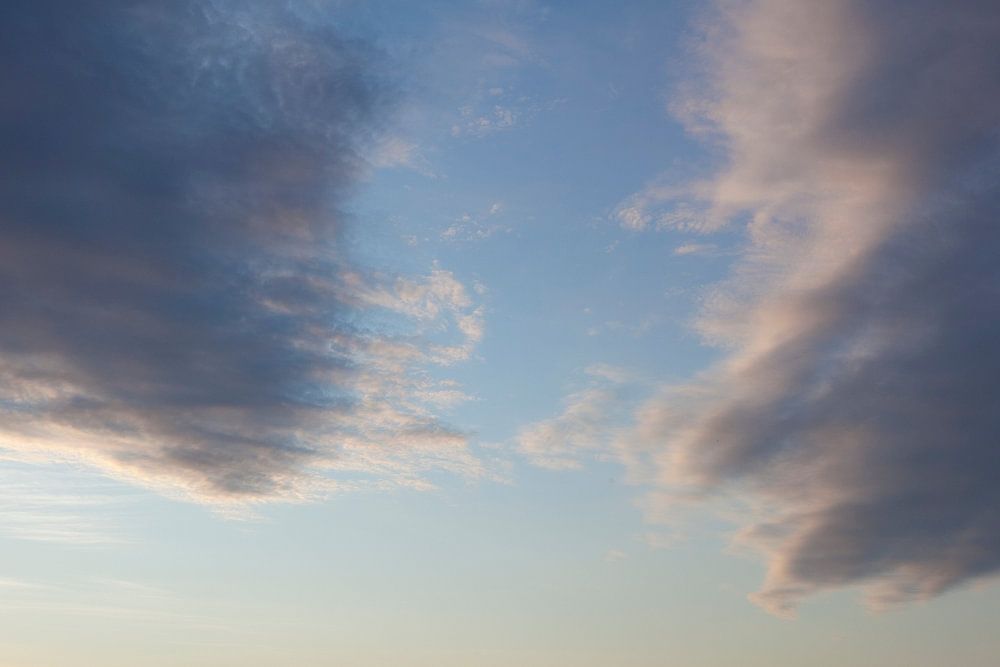 Sunset and clouds on the coast of Marlborough Sounds in New Zealand and mountains in the background