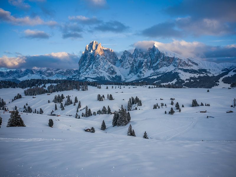 Buy the photo Sunset on the Seiser Alm by t.ART on canvas, ArtFrame, poster and wallpaper, printed on demand in high quality.