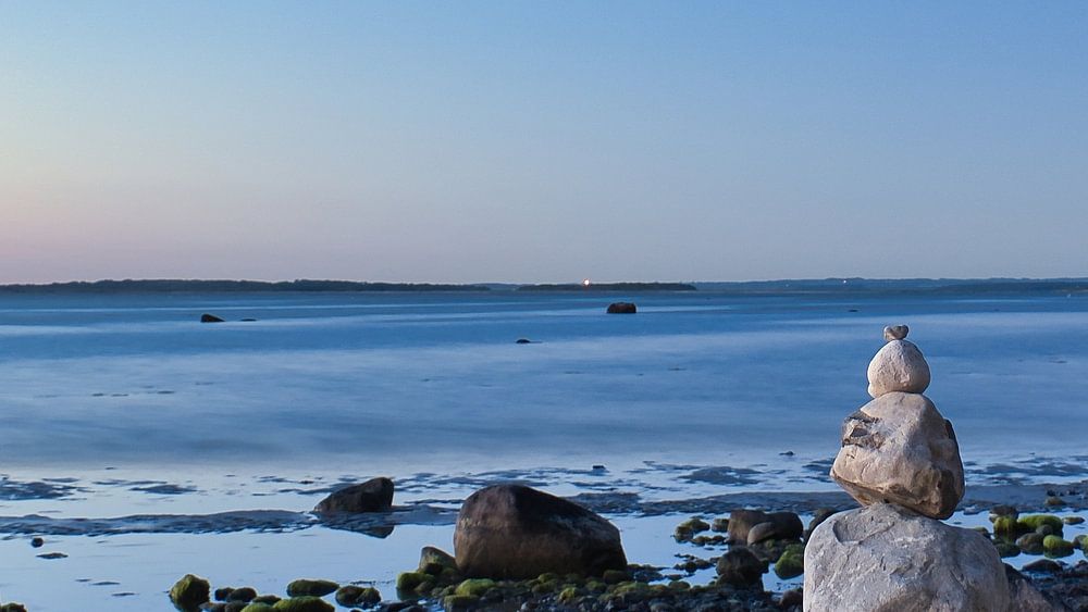 Sunset on the beach at Poel. Romantic evening atmosphere. Glistening waters of the Baltic Sea. Landscape shot by the sea