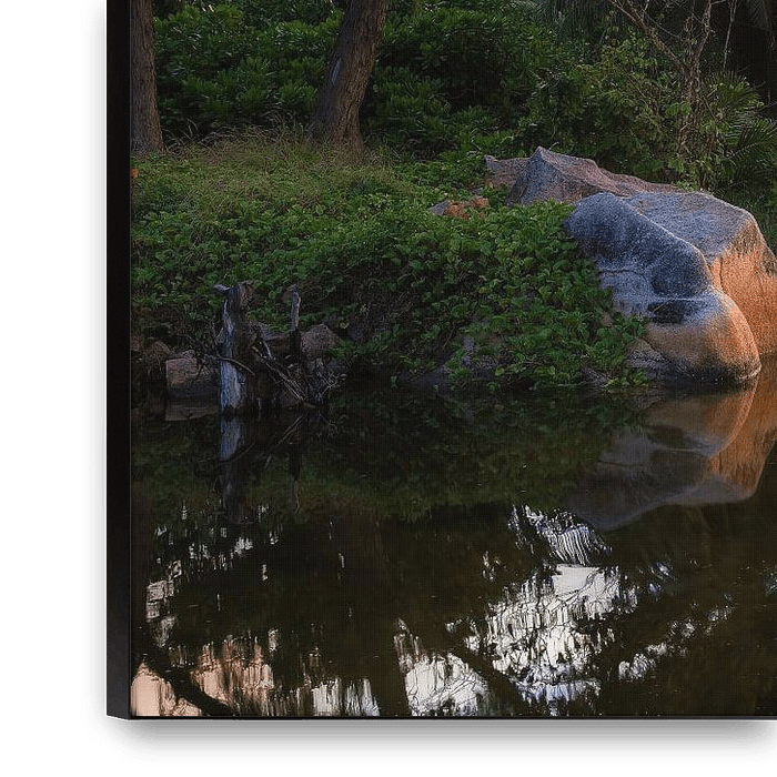 Buy this landscape artwork Sunset on the beach on Praslin in Seychelles. by Voss photography on canvas, ArtFrame, poster and wallpaper, printed on demand in high quality.
