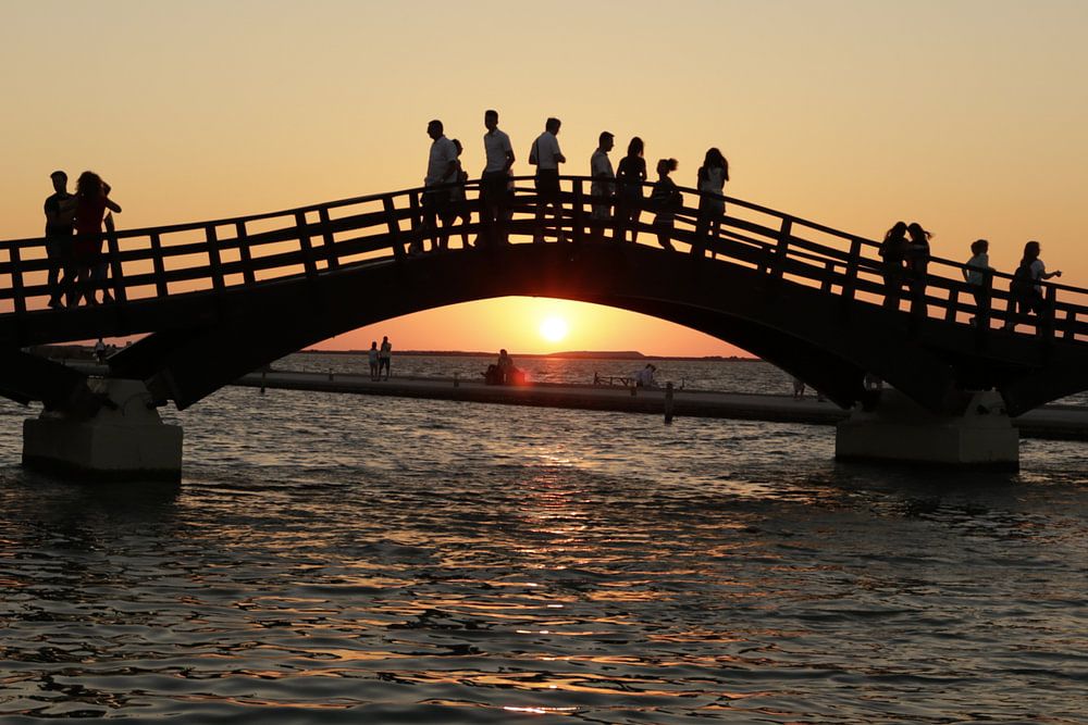 Sunset on the bridge, Lefkada city, Greece by Cora Unk