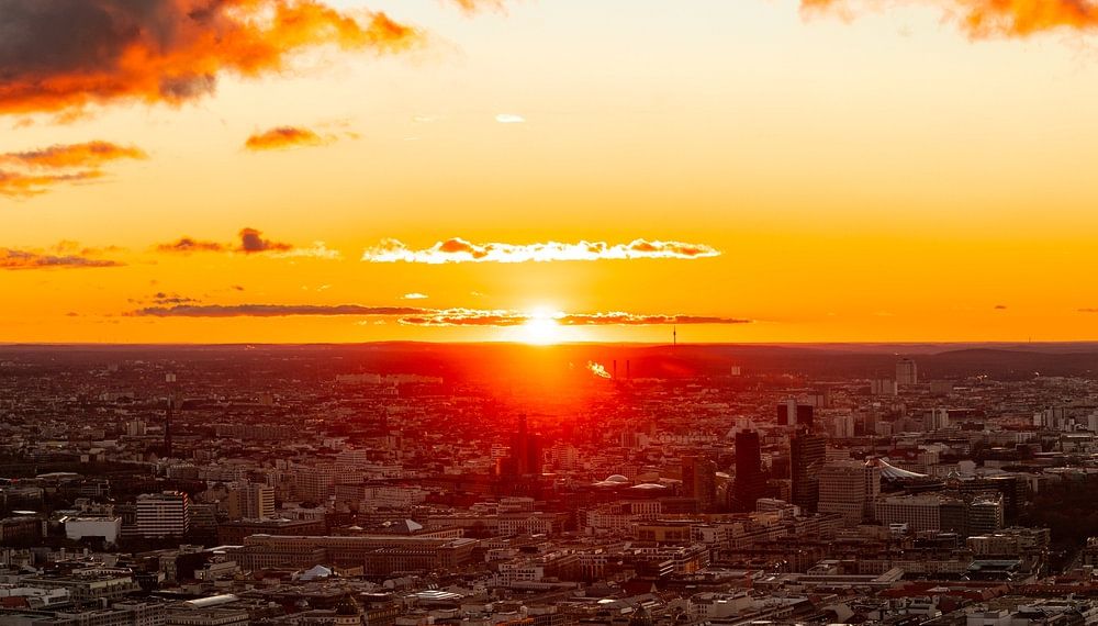 Sunset over Berlin from TV tower by Leo Schindzielorz