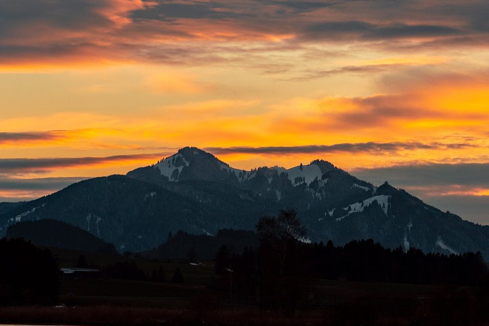 Sunset over the Alpspitze from the Hopfensee lake by Leo Schindzielorz