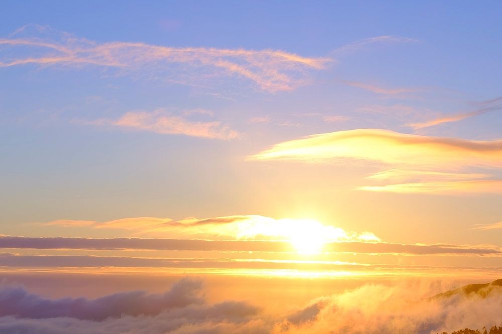 Clouds over the mountains near Rabaçal on Madeira island during sunset at the end of a beautiful summer day.
