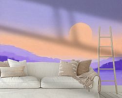 Details: abstract, painting, gradient, soothing, purple, salmon, orange, horizon, sun, art