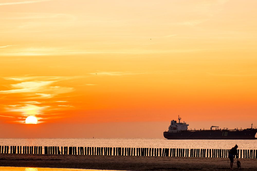 This work was taken during a beautiful sunset in Breskens, the Netherlands. You see a ship sailing as the sun sets.
