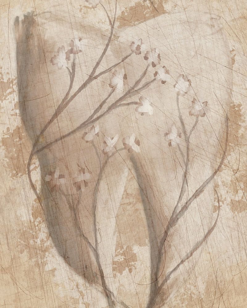 Surreal painting with tooth & flowers, in antique vintage style and an ancient cityscape in the background.