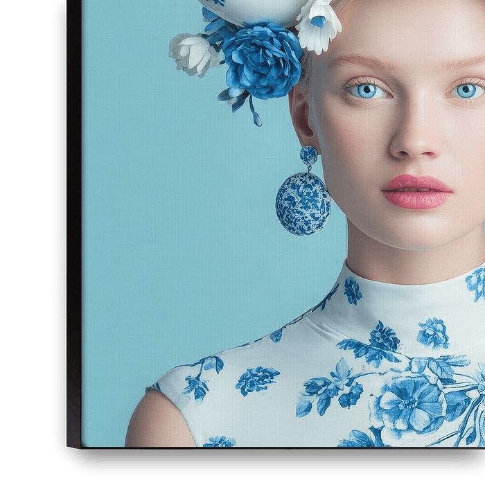 Buy this flower art Surrealist portrait featuring Delft blue by But First Framing on canvas, ArtFrame, poster and wallpaper, printed on demand in high quality.