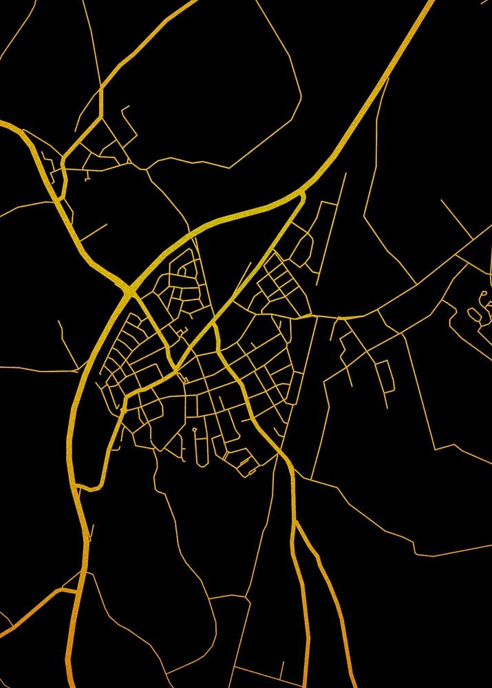 Buy this landscape artwork Susteren City Map Modern Black Gold by Kenda Maruyama on canvas, ArtFrame, poster and wallpaper, printed on demand in high quality.
