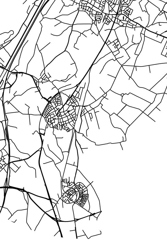 Black and white map, street map or street plan of Susteren. Susteren is located in the municipality of Echt-Susteren, province of Limburg. The city map includes all public roads in Susteren. Furthermore, the map is provided with the coordinates of the center of Susteren.