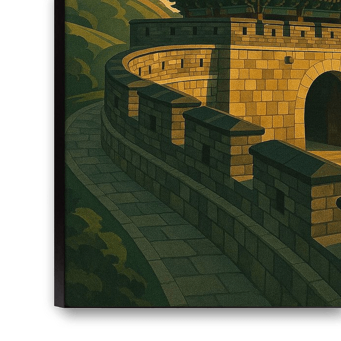 Hwaseong Fortress represents both strength and artistry — a masterpiece of 18th-century Korean engineering. This artwork captures that balance through precise structural lines, harmonious color combinations, and gentle lighting. It evokes the feeling of standing before the historic gate, surrounded by peaceful nature and centuries of preserved heritage.